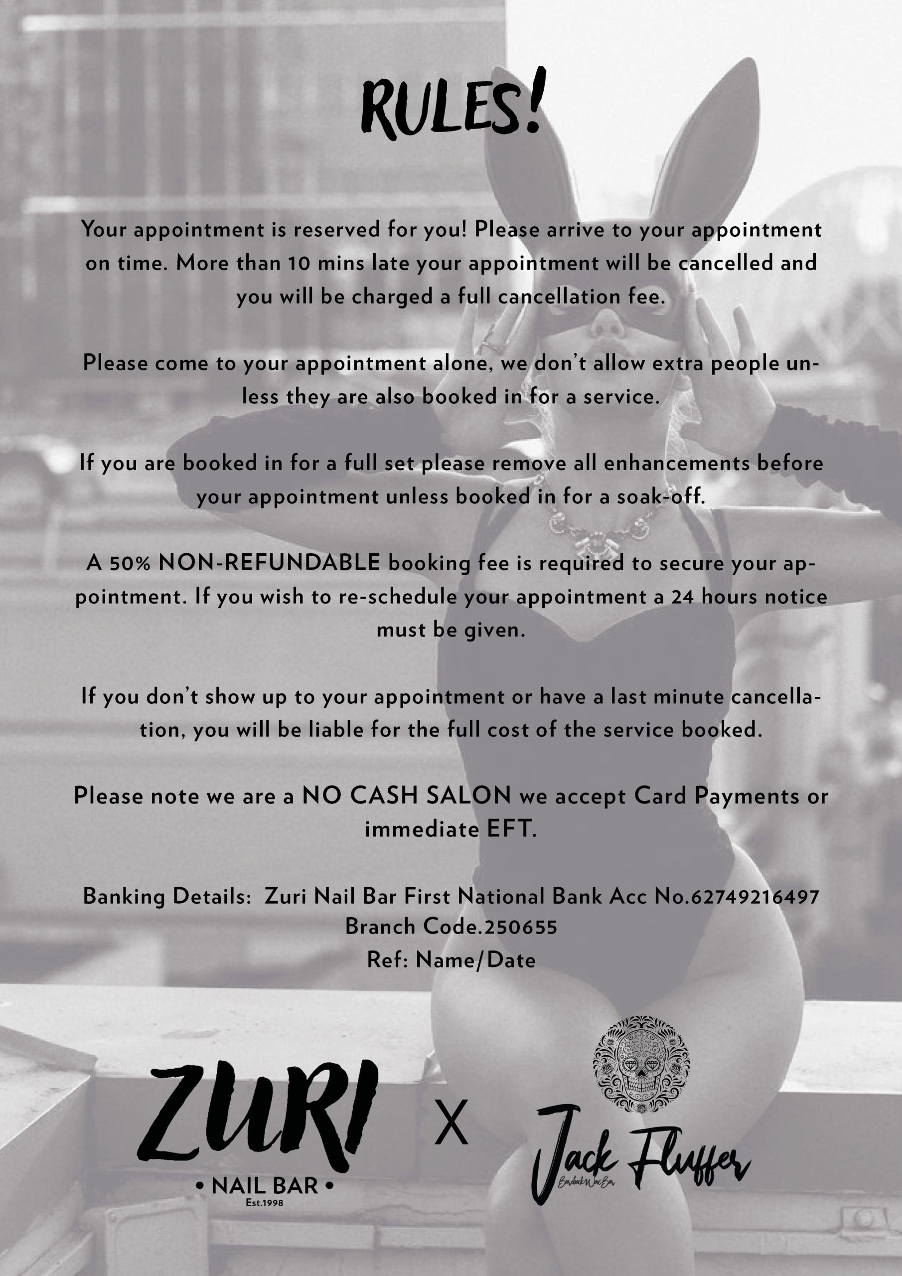 Respect the Glam: Arrive on time, darling! Late? We’ll have less time for your glow-up. Over 10 minutes late? You’ll be cancelled, and a cancellation fee will apply.